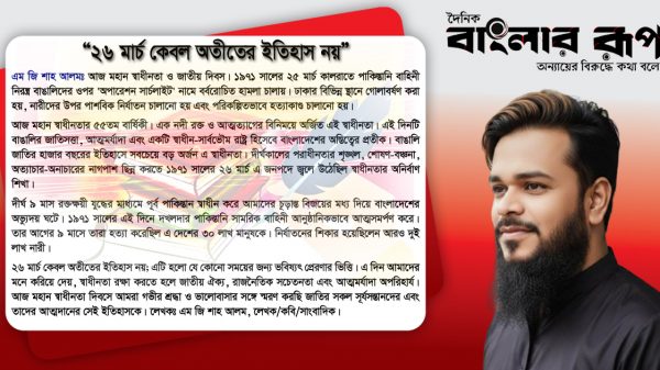 আজ মহান স্বাধীনতা ও জাতীয় দিবস। ১৯৭১ সালের ২৫ মার্চ কালরাতে পাকিস্তানি বাহিনী নিরস্ত্র বাঙালিদের ওপর ‘অপারেশন সার্চলাইট’ নামে বর্বরোচিত হামলা চালায়। ঢাকার বিভিন্ন স্থানে গোলাবর্ষণ করা হয়, নারীদের উপর বিস্তারিত...