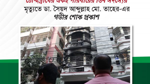 নিজস্ব প্রতিনিধি: ধানীর উত্তরায় একটি ভবনে ভয়াবহ অগ্নিকাণ্ডে চৌদ্দগ্রাম উপজেলার চিওড়া কাজী বাড়ির একই পরিবারের তিন সদস্যের মর্মান্তিক মৃত্যুতে গভীর শোক ও দুঃখ প্রকাশ করেছেন সাবেক সংসদ সদস্য ডা. সৈয়দ